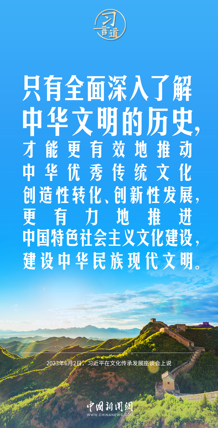 习近平总书记高度重视中华文明的传承发展,多次作出重要论述,强调要建设中华民族现代文明。