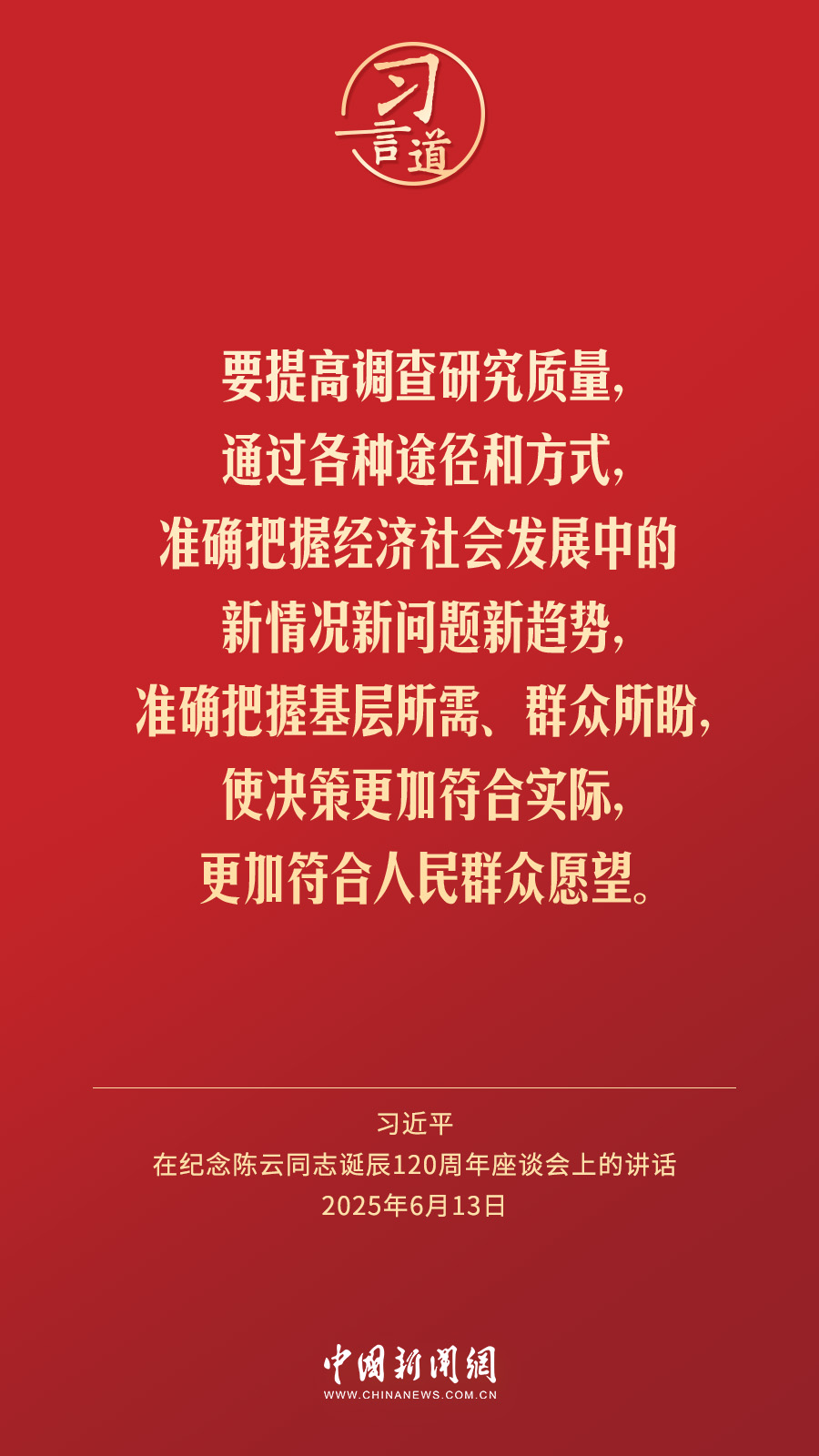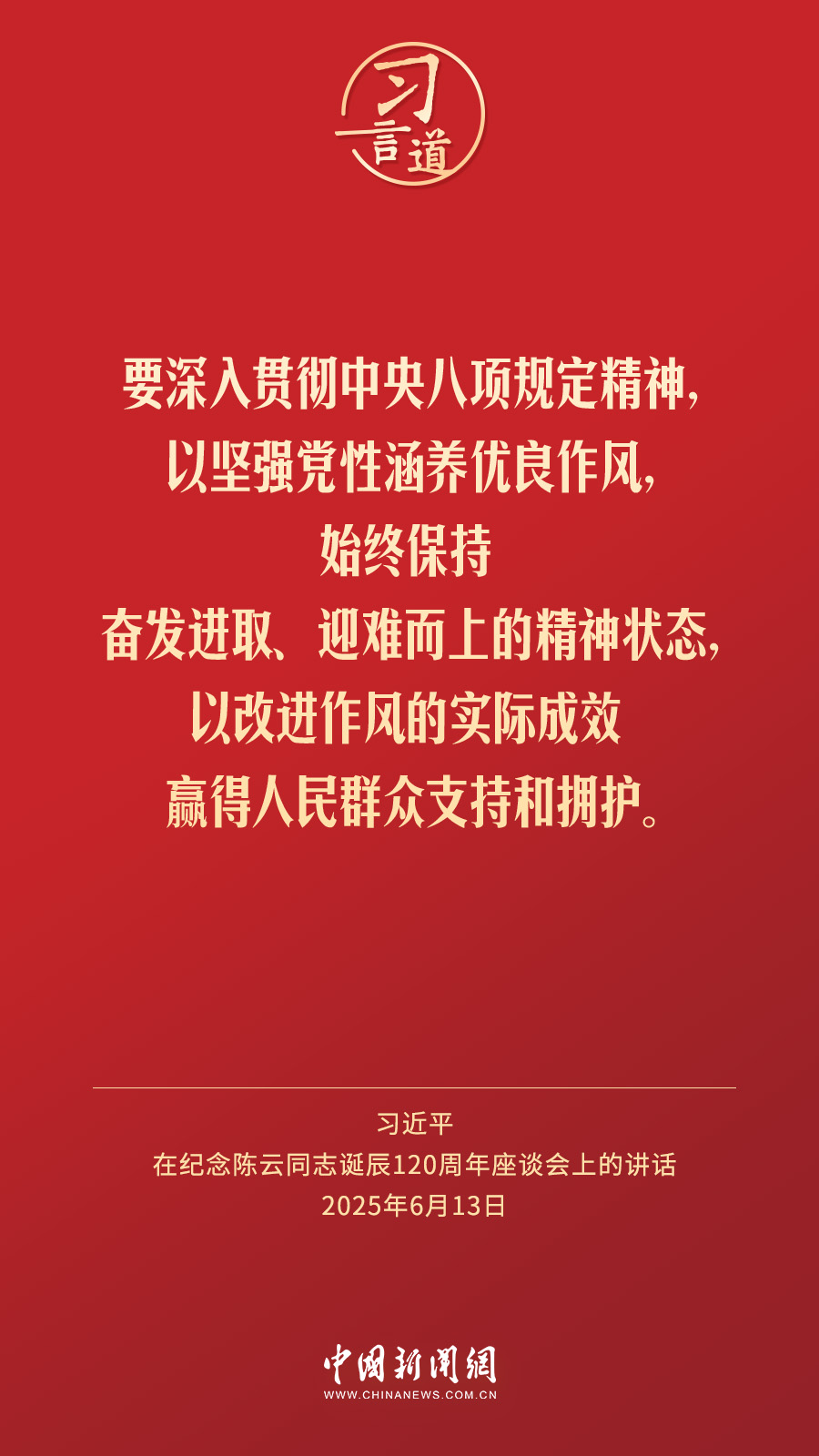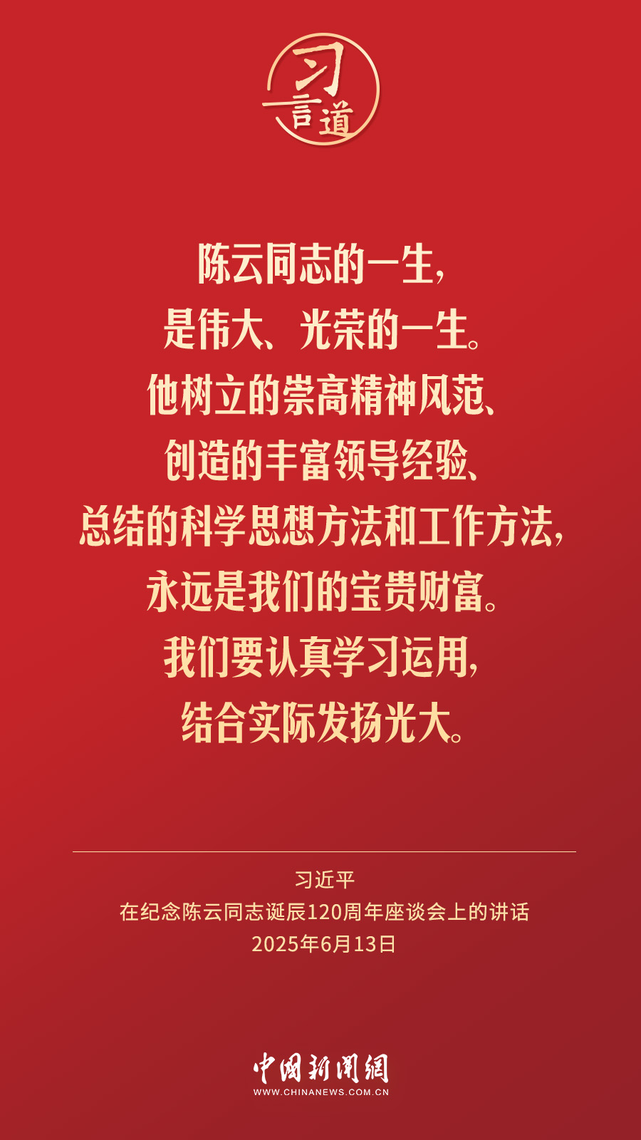中共中央13日在人民大会堂举行座谈会,纪念陈云同志诞辰120周年。中共中央总书记、国家主席、中央军委主席习近平发表重要讲话强调——