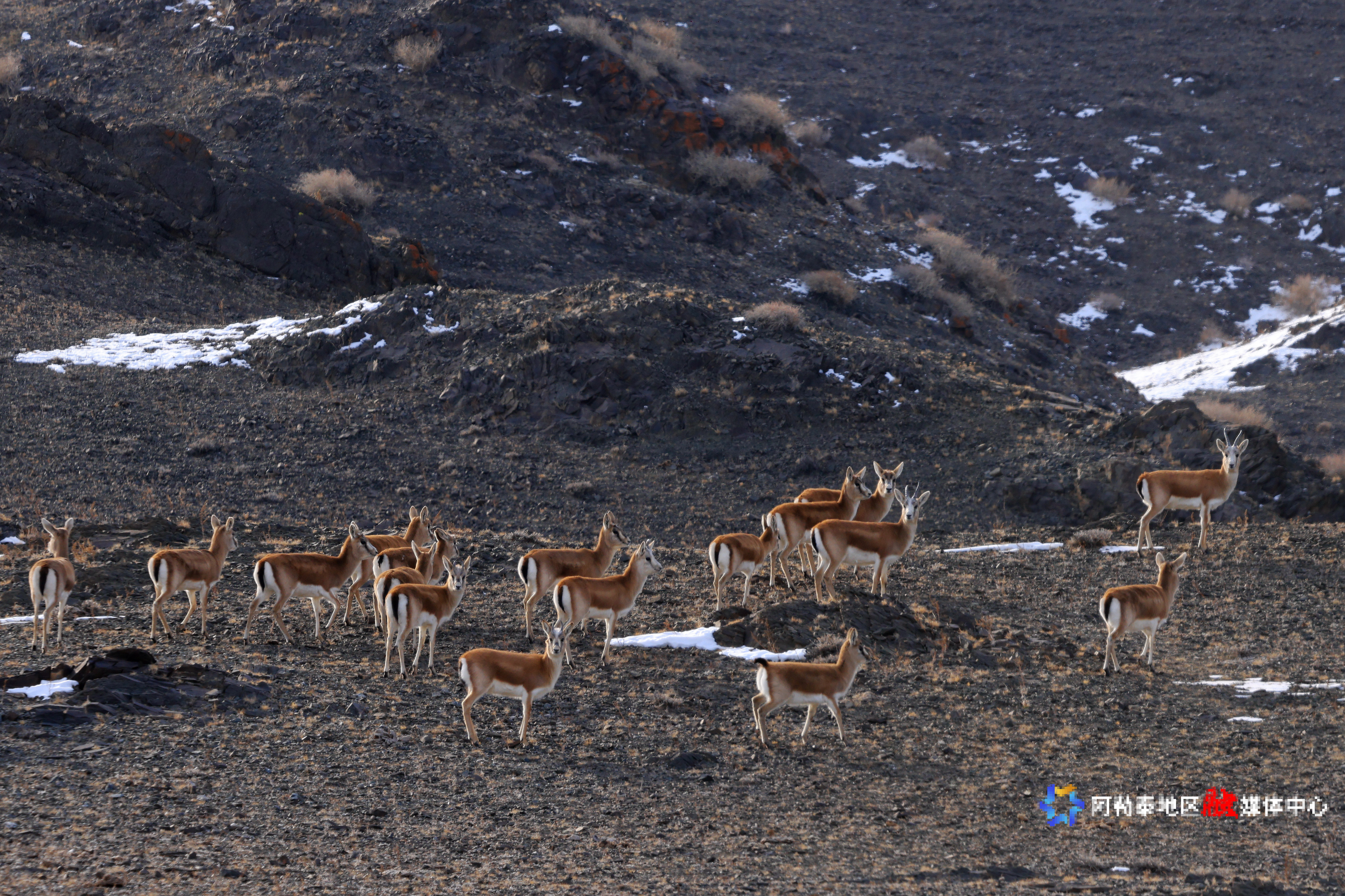 阿勒泰新闻网-阿勒泰地区融媒体中心(记者 阿尔达克·拜斯汗 摄)11月20日,布尔津县科克森山自然保护区,成群结队的鹅喉羚在山岭戈壁间觅食、奔跑,场面颇为壮观。