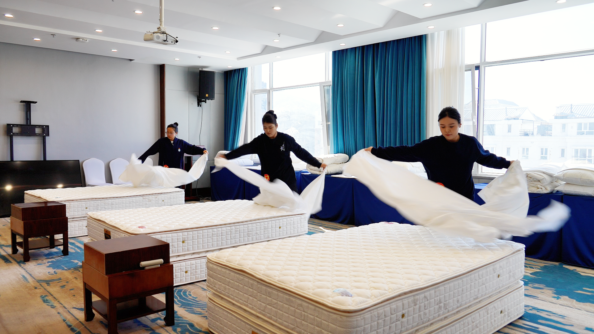 3月31日,阿勒泰市举办首届“工会杯”旅游服务行业技能大赛,参赛选手正在参加客房服务比赛。实习记者 叶丽娜·努坤摄