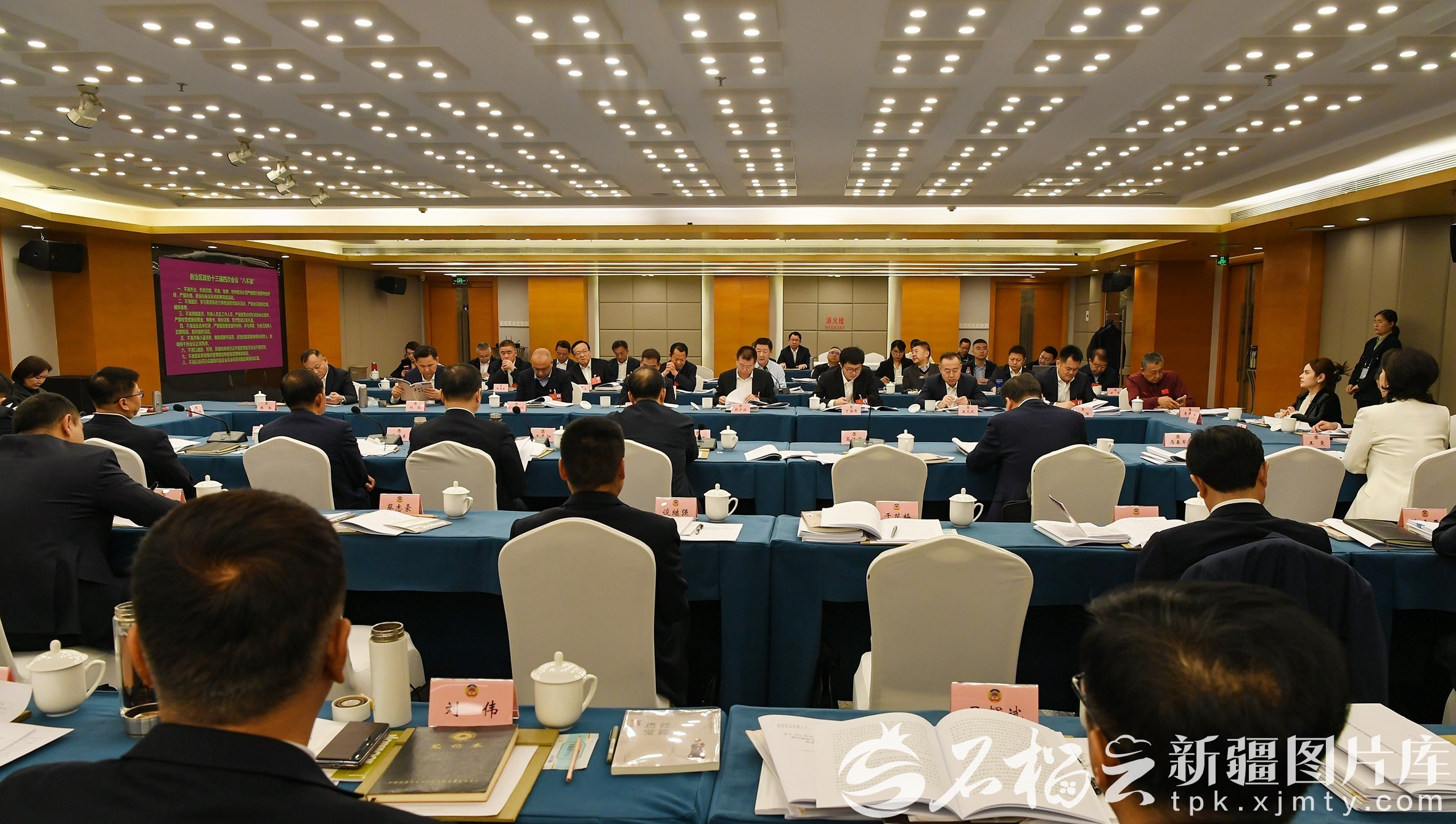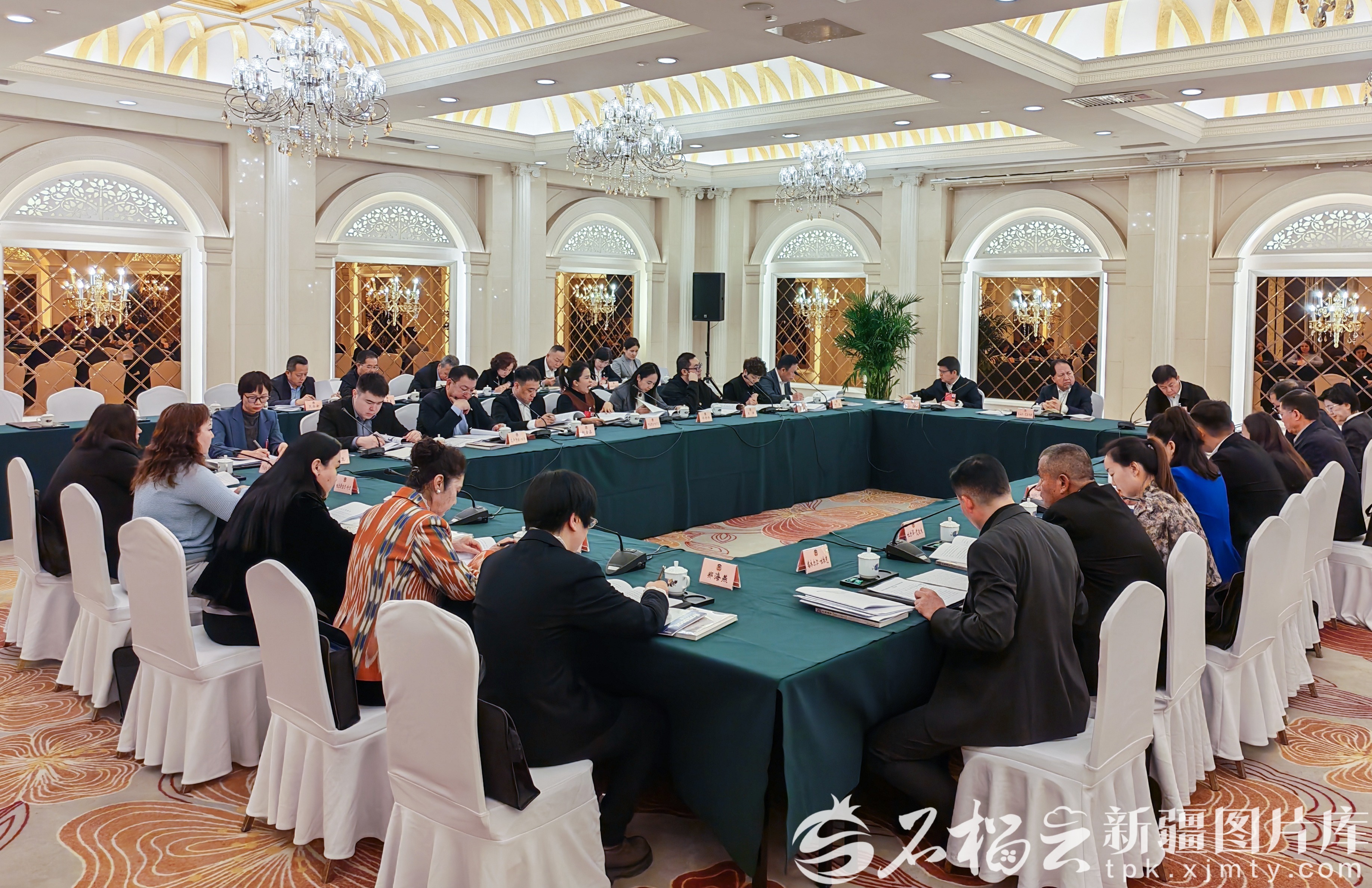 1月27日下午,文化艺术界、新闻出版界委员分组讨论政府工作报告、自治区“十五五”规划纲要草案、计划草案报告和预算草案报告。图为会议现场。 石榴云/新疆日报记者 李雄心摄