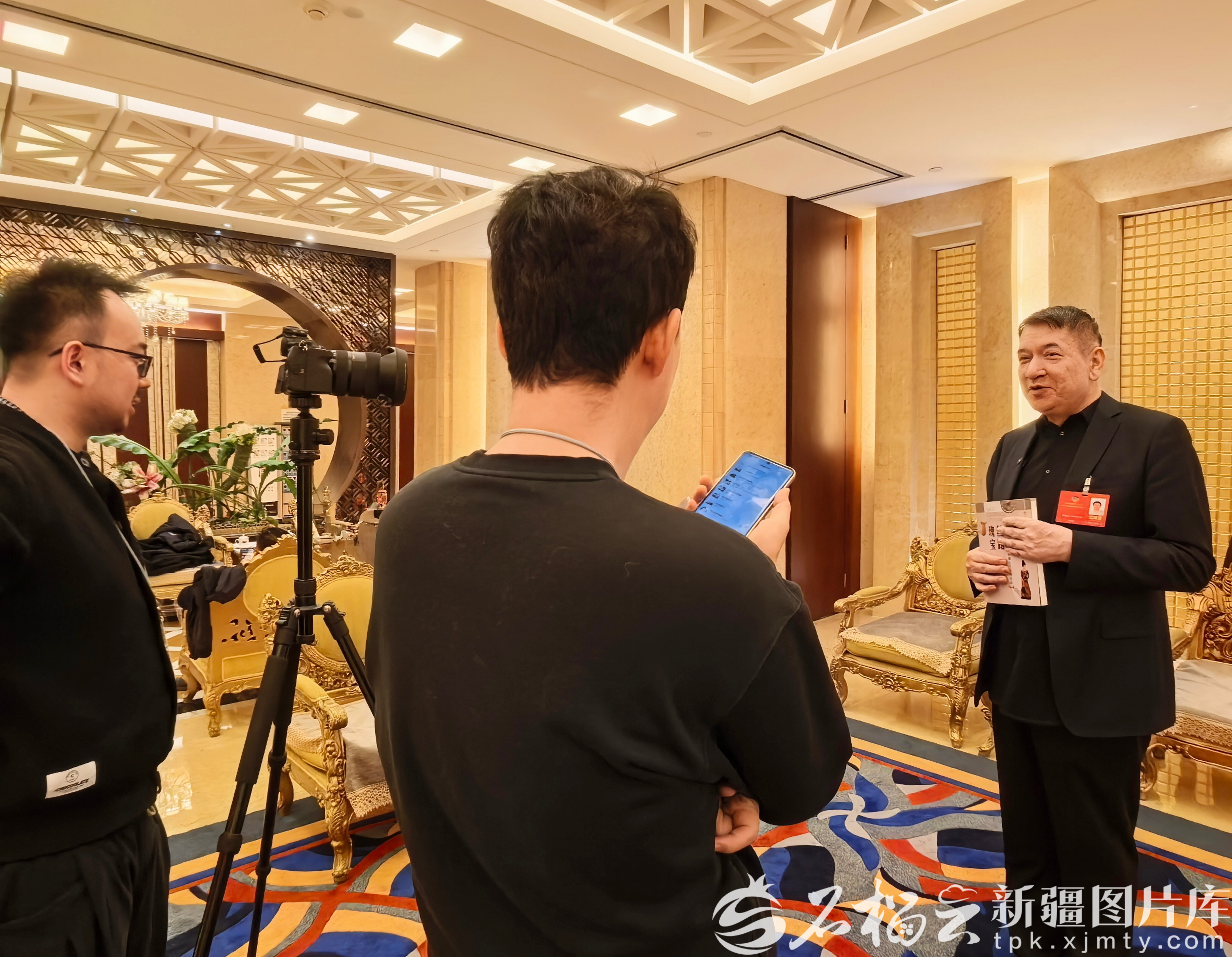 1月27日下午,阿迪力·阿布力孜委员在分组讨论间隙接受媒体采访。石榴云/新疆日报记者 李雄心摄