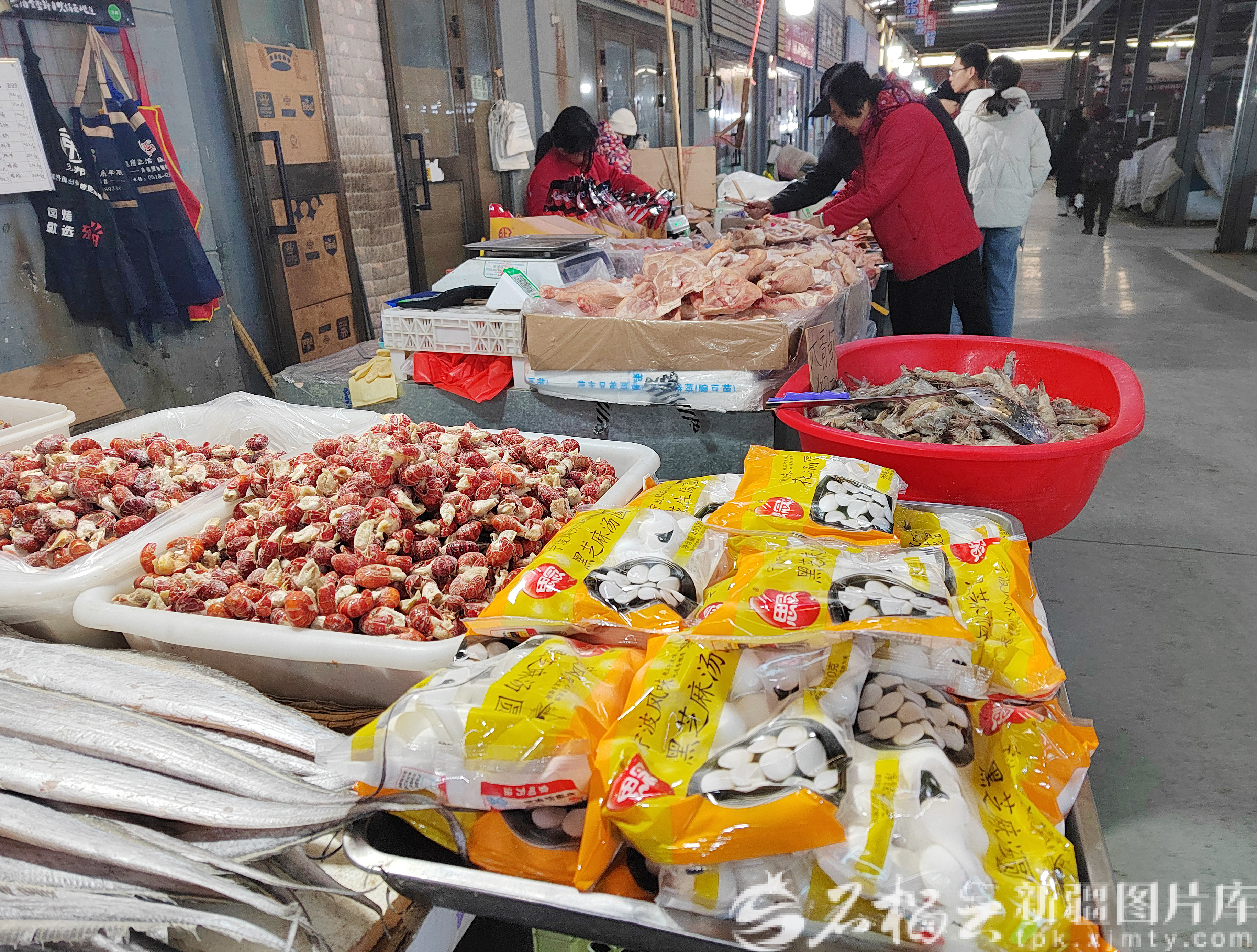 3月1日,市民在乌鲁木齐市诚信祥农贸综合市场选购速冻汤圆等食品。