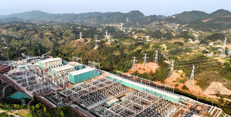 位于重庆市渝北区大湾镇的渝北换流站(2025年4月2日无人机摄)。□视觉重庆记者张锦辉摄