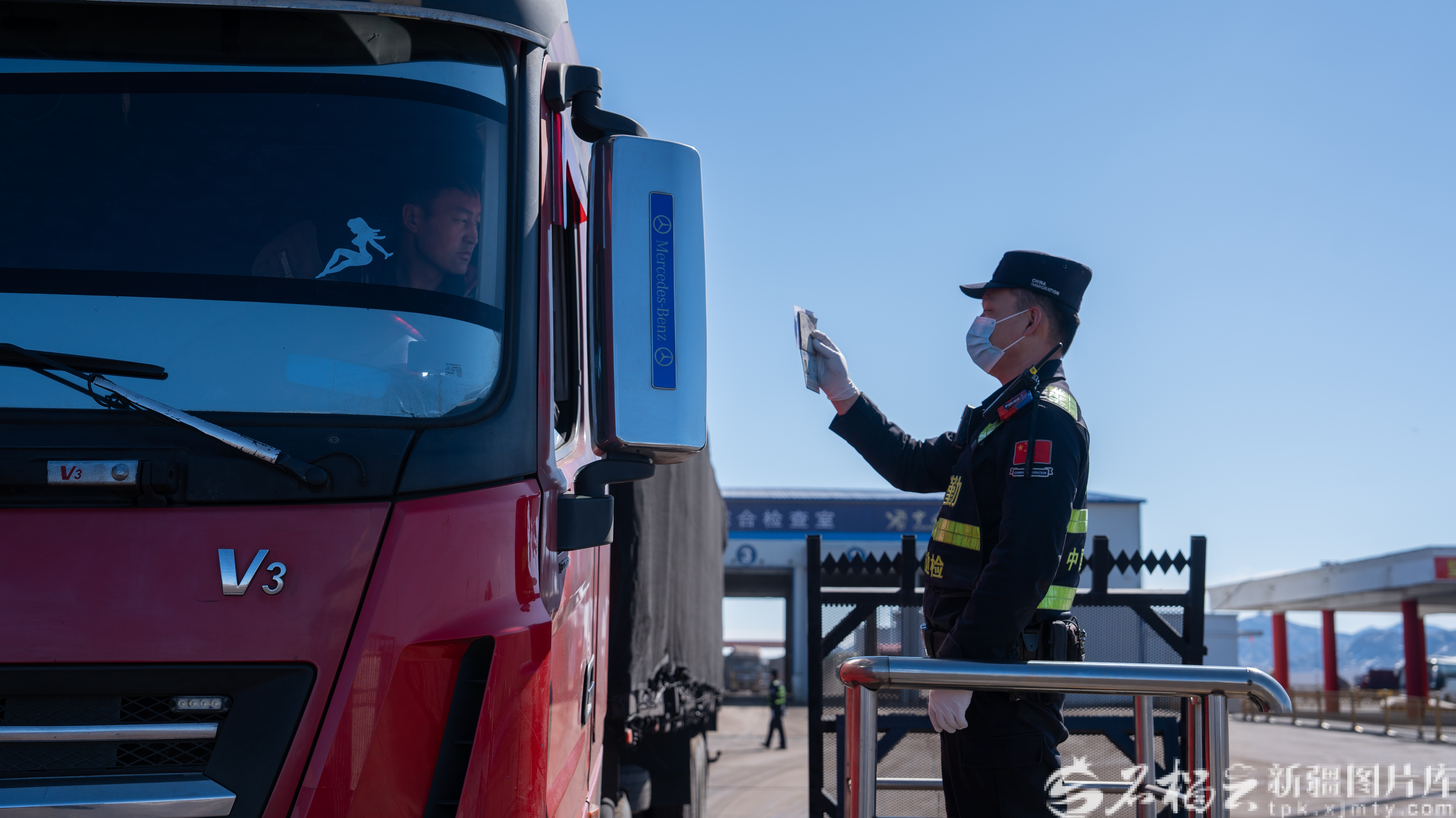 3月31日,塔克什肯出入境边防检查站民警在验放入境司机。常峥晓 摄